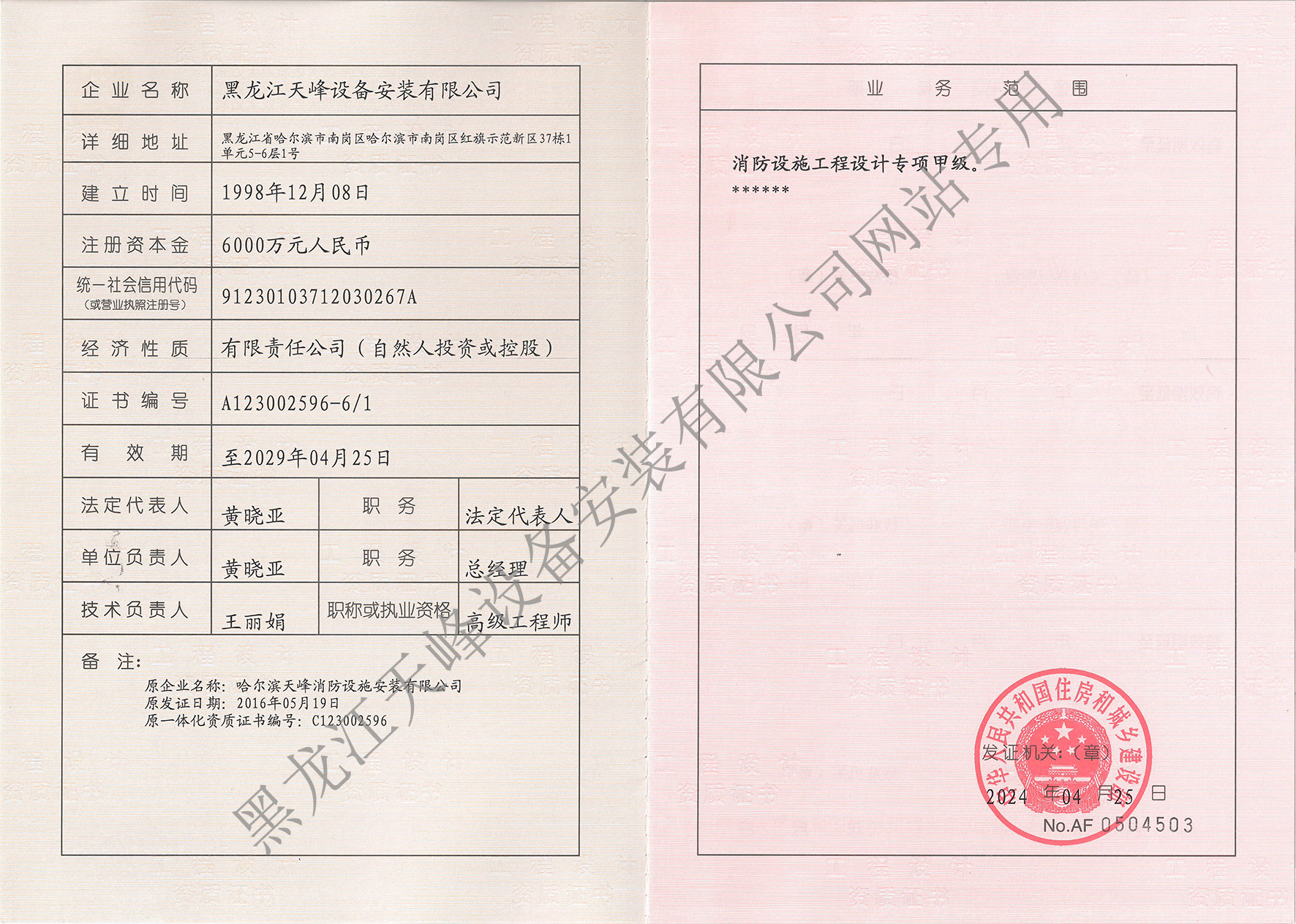 消防設(shè)施工程設(shè)計(jì)專項(xiàng)甲級